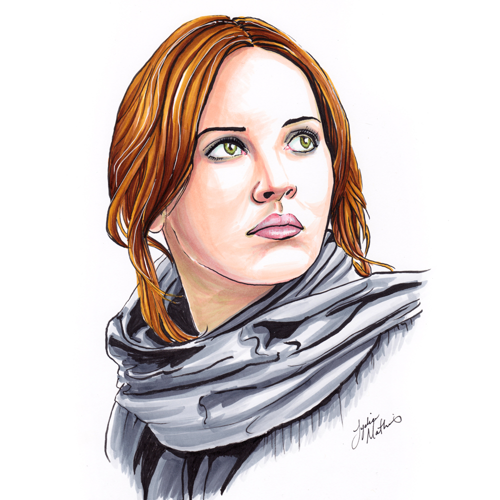 Jyn ErsoLydia Mathis2018-01-06T05:09:14+00:00 Project Description Illustration of Gyn Erso from Star Wars done with Copic Markers and ink. Related Projects CrossFit Lobo T-Shirt – “Raised by Wolves” Gallery FROG Gallery Don’t Worry Gallery “Red Head” Digital Portrait Gallery “Space Kitty” Gallery Tim Burton Inspired Piece – Sally by Moonlight Gallery